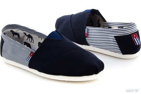 Kā jau minēts, klasiskajam modelim ir plakana, diezgan plāna zole, kas dekorēta ar pīta elementu. Modeļa augšdaļa ir izgatavota no plāna materiāla, kas ļauj pēdai “elpot”.