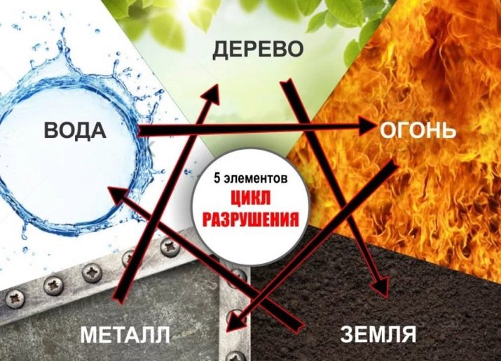 No austrumu filozofijas viedokļa Visums pastāv pastāvīgas piecu elementu mijiedarbības dēļ: ūdens, uguns, zeme, metāls un koks. Tie ir dabiskas enerģijas avoti, kas nepieciešami cilvēka eksistencijai. Piedaloties radošajā ciklā, šie elementi rada labvēlīgu Qi enerģiju, plūstot saskaņā ar Visuma likumiem. Elementu iznīcinošās darbības cikls veido Sha agresīvo enerģiju, kas var iekļūt mājā (birojā, dzīvoklī) un nodarīt lielu kaitējumu.