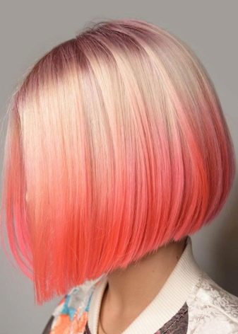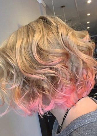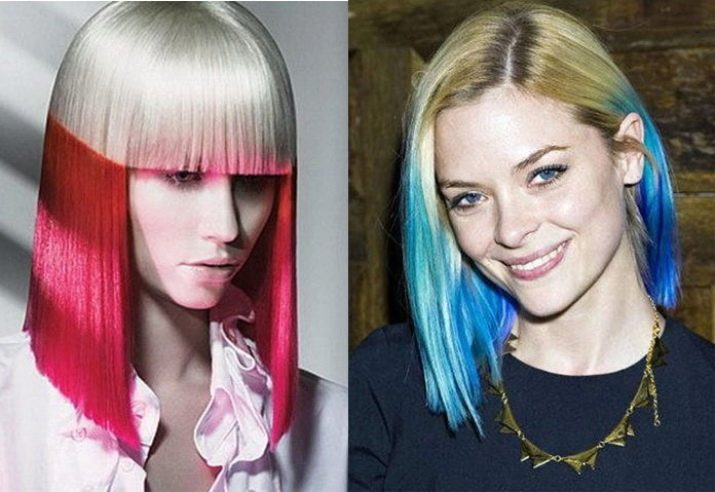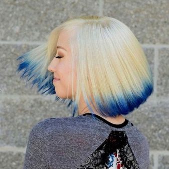 - Dabiskām blondīnēm visērtāk ir eksperimentēt ar krāsu paleti, jo jebkura spilgta krāsa nokrīt uz to krāsas, bez nepieciešamības papildus izcelt.Tajā pašā laikā blondīnes var arī veikt pāreju uz tumšākām šķipsnām, taču šī opcija nav piemērota katram matu griezumam.