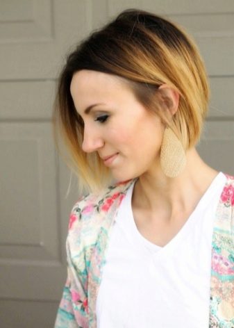 - Ombre, izmantojot pāreju starp tumšu un gaišu zonu, izmantojot pelēko nokrāsu, patiesībā izskatīsies uz vidēja garuma matiem, tieši virs pleciem.