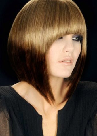 - Asimetriska kvadrāta faniem ir rūpīgi jāapsver šāda procedūra kā krāsošana, izmantojot ambre tehniku, jo šajā gadījumā ir jānosaka konkrēti virzieni, kas visizdevīgāk parādīs interesantu frizūras formu. Tāpēc ieteicams izmantot profesionālu frizieru pakalpojumus.
