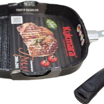 Daži zīmolu modeļi ir ļoti pieprasīti. Apsveriet dažus no visvairāk pārdotajiem. Kvadrātveida grila panna (diametrs 26 cm) ar noņemamu rokturi no līnijas "marmors". Modelis ir aprīkots ar vācu nelipīgo pārklājumu, to var izmantot uz gāzes, elektriskām, stikla keramikas krāsnīm, krāsnī.