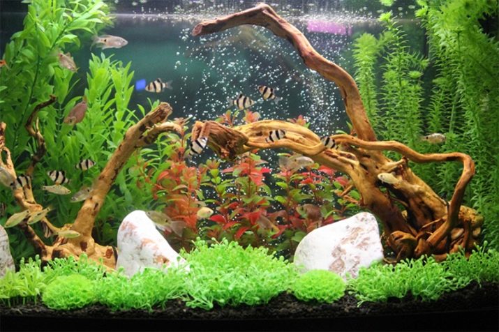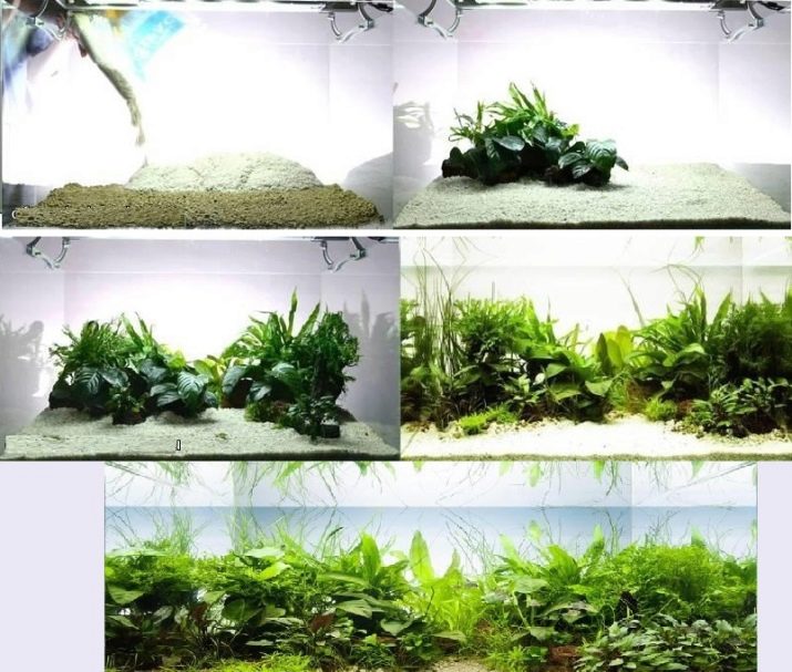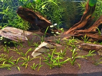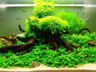 Dan juga perlu ditambah cincin atas cecair dan karbon dioksida. Oleh kerana kandungan ini, tumbuh-tumbuhan akan kelihatan cerah dan sihat. Untuk menghiasi akuarium dengan tumbuh-tumbuhan yang indah, ia adalah perlu untuk memperbaiki tumbuh-tumbuhan di atas batu-batu.