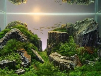 Menghias akuarium dengan bantuannya adalah arah lain dalam reka bentuk takungan, yang mempunyai beberapa kelebihan: