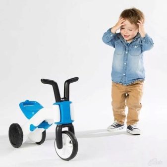 Perhatian yang sewajarnya masih perlu dibayar. ringan bahan. Roda diperbuat daripada getah buih adalah lebih praktikal dan lebih ringan daripada yang kembung, dan seiring dengan bingkai aluminium, berat basikal berjalan tidak lebih dari 2 kg. Kemudian bayi akan dapat mengangkat dan membawa pengangkutannya sendiri, menekankan kemerdekaannya.
