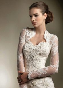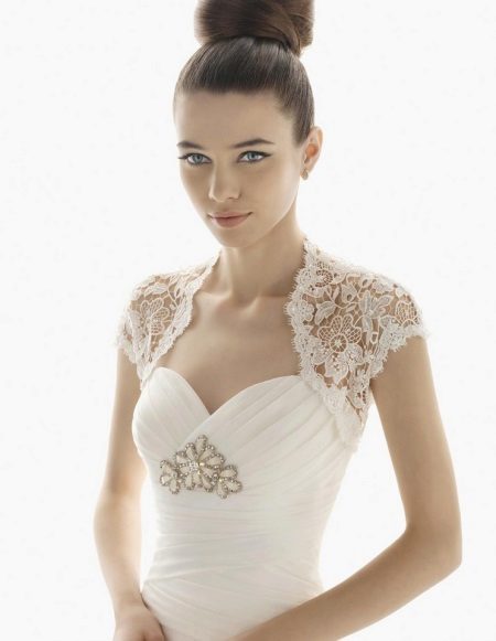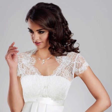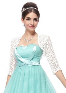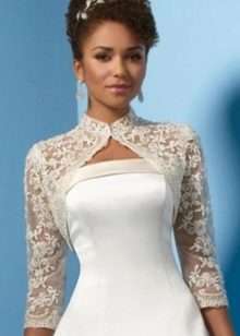 Lace bolero juga boleh digunakan selepas perkahwinan. Warna putih dan renda tidak pernah keluar dari gaya. Bolero ini akan menjadi pelengkap sempurna kepada mana-mana pakaian petang.