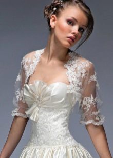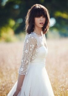 Bolero yang sangat pendek dan pendek adalah pelengkap sempurna untuk pakaian perkahwinan yang canggih.
