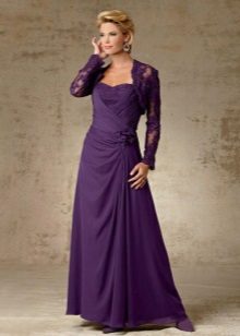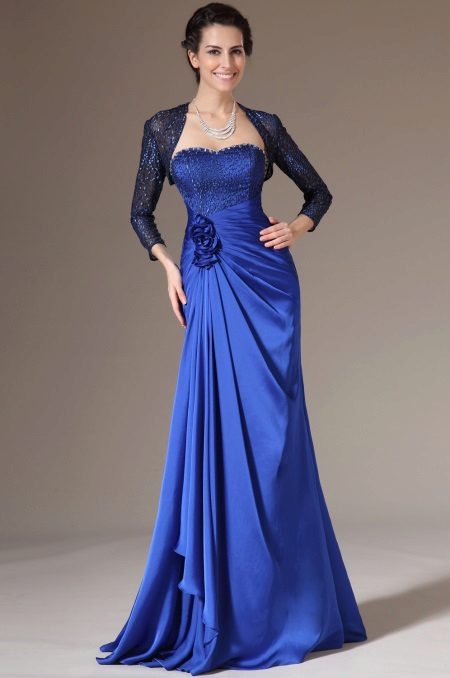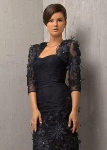 Bolero dan gaun malam di lantai - pakaian feminin dan elegan yang luar biasa. Hanya kasut bertumit tinggi yang sesuai untuk kit ini. Pakaian boleh dibuat dari baldu, sutera tebal, chiffon, satin berkilat. Bolero renda boleh dipadankan sama dengan nada pakaian atau kontras (hitam atau putih).