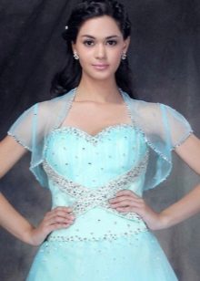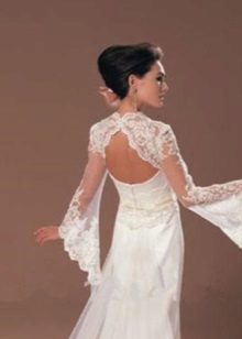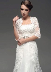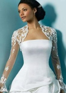 - jika gaun pengantin itu sangat dihiasi dengan rhinestones, manik-manik, manik-manik, maka bolero sepatutnya mudah dan ringkas. Dan sebaliknya.