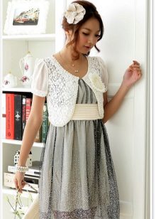 Untuk membuat imej yang lembut dan romantis, anda boleh menggunakan gabungan yang kurang ketat dan formal. Sebagai contoh, pakaian musim panas yang ringan dengan bolero hitam yang bergaya.