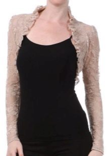 Lace bolero paling kerap digabungkan dengan pakaian elegan atau malam. Model dengan lengan panjang kelihatan sangat menarik dengan pakaian terbuka pada model tali atau korset.