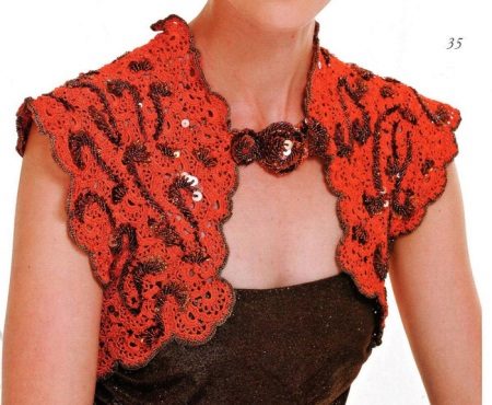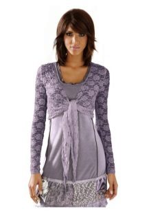 Pada mulanya, bolero adalah jaket yang dipendekkan yang meliputi bahagian belakang dan lengan dan meninggalkan garis leher terbuka. Walau bagaimanapun, fesyen moden telah membuat penyesuaian kepada model klasik. Dan hari ini anda boleh mencari boleros pelbagai gaya dan gaya. Kepelbagaian wanita yang paling elegan dan feminin ini adalah bolero renda.