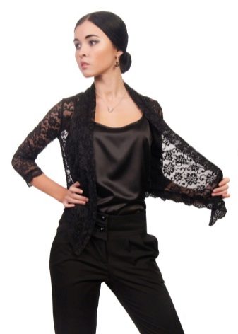 Seorang wanita perniagaan juga boleh menggunakan bolero renda sebagai sebahagian daripada guamannya. Bolero biasa klasik, warna-warna ketat harmoni dengan sempurna dengan rok pensil, dengan pakaian sarung dan dengan seluar ketat.