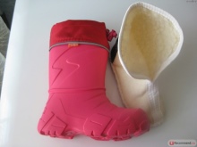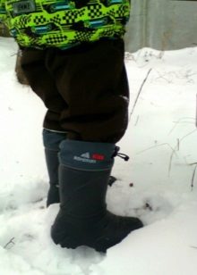 Aci yang luas membantu dengan mudah memakai kasut walaupun untuk kanak-kanak. Dan tali pinggang di bahagian atas butangan menghalang air daripada masuk ke dalam, supaya dalam butir tersebut anda dapat bertelur walaupun melalui lopak yang terdalam.