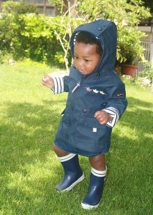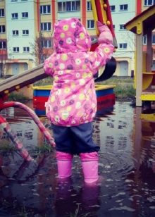 But getah praktikal untuk dipakai. Mereka mudah dibasuh, kering dengan cepat dan sempurna mengekalkan rupa asal mereka walaupun selepas beberapa bulan penggunaan. Tapak getah beralun tidak akan membenarkan anak itu menghampiri asfalt basah.