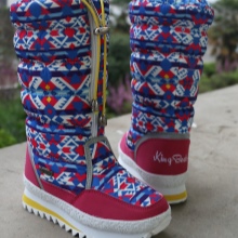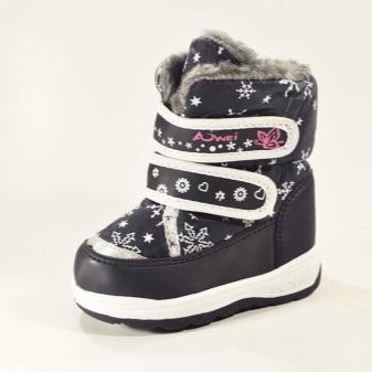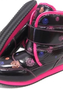 Untuk usia yang lebih muda, lebih baik membeli produk dengan Velcro. Penjepit ini bukan sahaja memudahkan memakai kasut, tetapi juga menyesuaikan lebar kaki bawah, memandangkan pakaian. Sesuai dengan sepatu bot untuk kaki menghilangkan pergeseran salji. Untuk daya tarikan maksimum, dutiks dihiasi dengan pelbagai cetakan dan aplikasi.