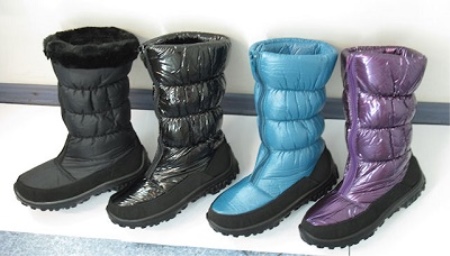 Jika musim sejuk di rantau ini sejuk, anda boleh membeli gantungan tekstil dengan satu-satunya tapak tebal yang tebal. Selalunya bootleg seperti kasut diperbuat daripada kain rajutan. Untuk frosts yang teruk, tidak disyorkan untuk membeli produk yang dibuat daripada kulit sintetik, kerana ia boleh retak.
