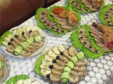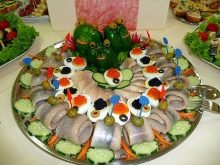 Di meja perayaan sentiasa ada daging, ikan, keju, buah-buahan dan sayur-sayuran. Malah produk mudah seperti ini boleh disajikan dengan baik kepada para tetamu. Rempah dari pelbagai jenis sayur-sayuran sendiri kelihatan cerah. Daripada sayur-sayuran, anda boleh membuat bunga atau hanya menambah sayur-sayuran.