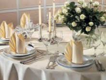 Selain reka bentuk hidangan yang indah, anda perlu dapat menetapkan jadual dengan betul. Peralatan makan perlu dibentangkan secara simetri. Hidangan hendaklah diletakkan dalam garis lurus atau dalam bulatan jika jadual mempunyai bentuk bulat. Napkin boleh bukan sahaja item praktikal, tetapi juga elemen hiasan, jika mereka dilipat dengan indah.