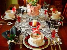 Meja yang direka dengan indah dapat menekankan suasana cuti. Anda boleh menghiburkan tetamu dengan hidangan yang tidak hanya mempunyai rasa yang luar biasa, tetapi juga penampilan cantik.