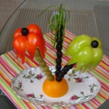- Angka atau bunga yang dibuat dari sayur-sayuran atau buah-buahan akan menjadi hiasan yang sangat baik dari hidangan perayaan.