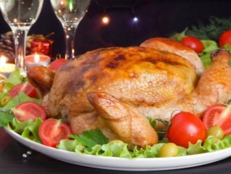 Pada Tahun Baru dan jadual cuti Krismas, hampir selalu seekor burung panggang. Ia boleh menjadi ayam, itik, angsa atau ayam belanda. Permainan yang dipanggang sendiri kelihatan agak menarik dan menarik, tetapi agak biasa.