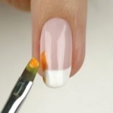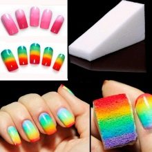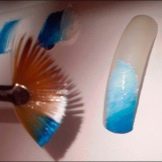 - Melukis pada kuku kecerunan. Dalam kes ini, manicurists paling kerap menggunakan berus silikon atau span. Hujung instrumen harus rata, satu-satunya cara untuk mencapai aliran yang lancar warna dan warna. Untuk teduhan yang paling baik dari shellac yang cukup tebal, selepas menggunakannya, anda harus memilih berus dengan longgokan lembut. Berus keras untuk mencipta peralihan warna halus pada kuku tidak akan berfungsi.