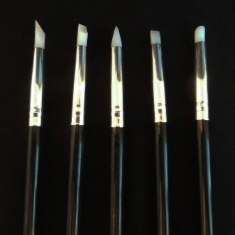 Satu kebaharuan baru-baru ini adalah berus dengan tip silikon. Bahan anjal sesuai untuk bekerja dengan shellac. Ia tidak tersumbat atau cacat oleh komposisi padat.Alat sedemikian mudah untuk dibersihkan selepas digunakan, ia sangat tahan lama. Di samping itu, tips silikon boleh menjimatkan perbelanjaan pengilat gel.