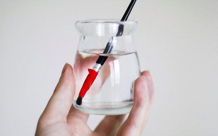 - Turunkan berus ke dalam bekas supaya produk meliputi bulu. Teratas jika perlu. Biarkan alat selama beberapa minit supaya bulu mendapatkan sedikit basah.