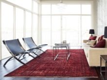 Oleh itu, penutup merah di ruang tamu yang cerah perlu diberi penekanan dengan bantal warna yang serupa atau corak yang sama pada langsir. Apabila memilih produk permaidani di dalam bilik yang terang, adalah penting untuk memutuskan apa kesan dalaman yang akan dibentuk - dalam nada yang teredam dan santai atau yang bertentangan.