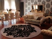 - Di dewan yang luas, permaidani bersaiz besar meliputi kawasan perabot sepenuhnya.