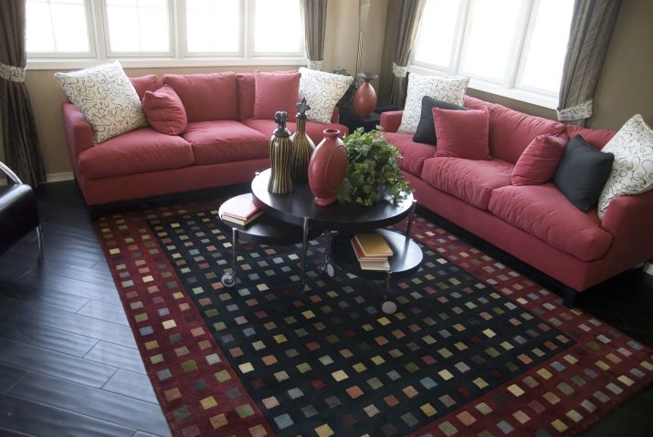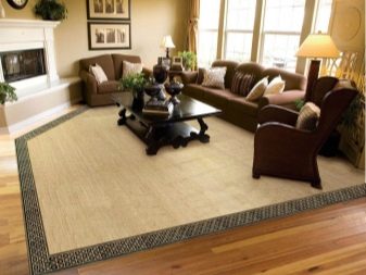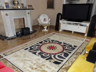 Apabila menyusun unsur-unsur perabot di ruang tamu di sekeliling perimeter atau dalam bentuk bentuk persegi ruang tamu, permaidani yang dipangkas pada saiz yang diingini dibenarkan. Adalah penting untuk diingat bahawa kebanyakan karpet mempunyai lebar biasa sehingga 3.6 m, dan panjangnya. Ia mengikuti salutan dengan satu sisi lebih daripada 3.6 m tidak boleh diperolehi.