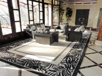 Untuk susunan salutan yang tidak dapat dipastikan di dalam dewan, tanda khas digunakan, menonjolkan kontur penempatan masa depan mereka dengan pita berwarna. Ini mengambil kira beberapa aspek. Permaidani di dalam bilik disambungkan dengan susunan elemen sofa dalam tiga versi.