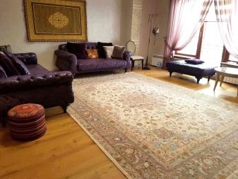 - Pelapis bersaiz kecil akan menghiasi kawasan tertentu: di hadapan tempat tidur, tempat perapian, di sudut kanak-kanak.