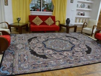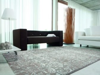 Di dalam bilik yang terang, keutamaan diberikan kepada karpet warna sejuk. Ruang tamu gelap disegarkan dengan nada hangat, sederhana. Menekankan keindahan perabot, anda perlu memilih produk biasa. Permaidani dengan corak akan mengalih perhatian perhatian dari pedalaman.
