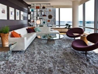 Apabila memilih model untuk dewan, penting untuk mengetahui banyak tentang panjang dan struktur longgokan. Perlu diingat bahawa jejak kasut dan objek lain yang berbaring di atasnya dicetak pada velor, ini adalah permukaan yang sangat muram. Dari segi kepraktisan, penutupnya cukup sesuai untuk ruang tamu, di mana seratnya ditenun menggunakan kaedah frieze, saxony atau boucle.