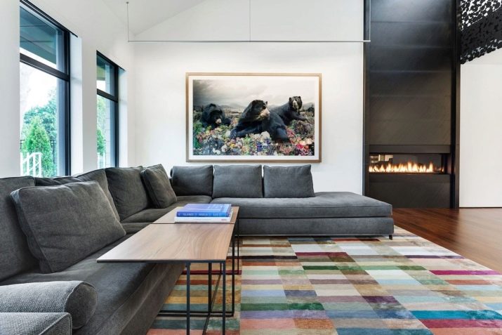 Dalam ruang tamu ruang tamu, permaidani yang dipilih dengan baik menjalankan beberapa fungsi yang berkaitan: