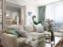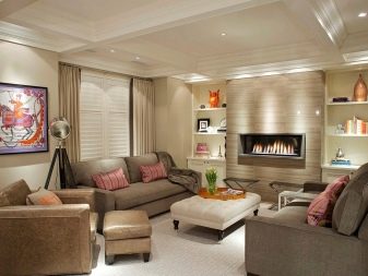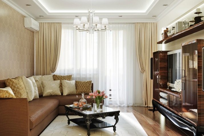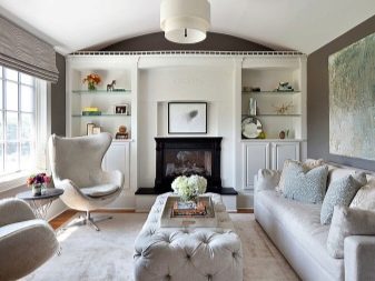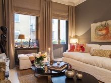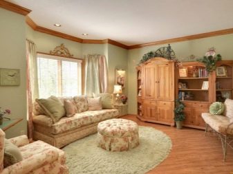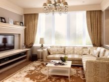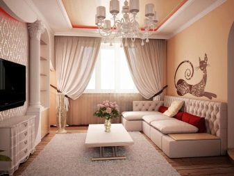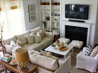 - Perabot dipilih atas dasar rakaman dewan: saiz besar ensemble adalah baik untuk bilik-bilik yang luas, dalam yang kecil ia perlu memilih sofa padat dan meja.