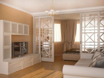 - Di dalam bilik yang sempit, lebih baik membuat susunatur perabot linear, membahagikan ruang menjadi zon berfungsi, memisahkan setiap perabot (contohnya, membuat partisyen dengan bantuannya).