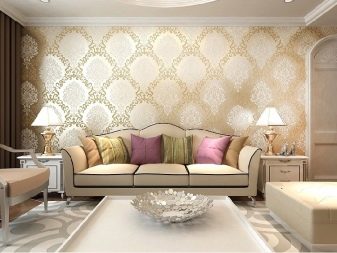 Adalah penting untuk memilih jenis pelapis dinding yang betul. Ini mesti dilakukan dengan mengambil kira gaya yang dipilih sebagai asas. Ia perlu memilih dengan berhati-hati pola corak, dan khususnya, warna dan tema. Sebagai contoh, jika ia adalah gaya etnik, cetakan boleh digubah dan mudah. Untuk klasik, anda boleh memilih kertas dinding dengan monogram, tetapi lebih baik untuk bertaruh pada tekstur. Dalam gaya moden, mereka menggunakan lapisan tanpa gambar, tetapi dengan tekstur yang unik.