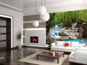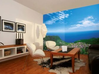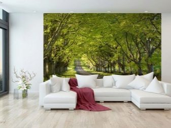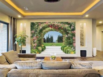 Anda boleh membuat kesan peningkatan visual di dalam bilik dengan kertas dinding yang betul. Ini boleh menjadi kanvas dengan percetakan foto yang realistik yang menggambarkan taman, kolam, tingkap panorama dengan pemandangan laut, akses ke salah satu jalan lama dengan rumah seni bina asli. Walau bagaimanapun, apabila memilih penyelesaian sedemikian, jangan lupa: wallpaper seperti itu adalah aksen yang bergaya hanya jika tempat di dalam bilik dipilih untuk mereka dengan betul. Anda boleh menempelkan sebahagian dinding dengan aksen sama berhampiran ruang tamu, ruang makan atau tempat berehat.