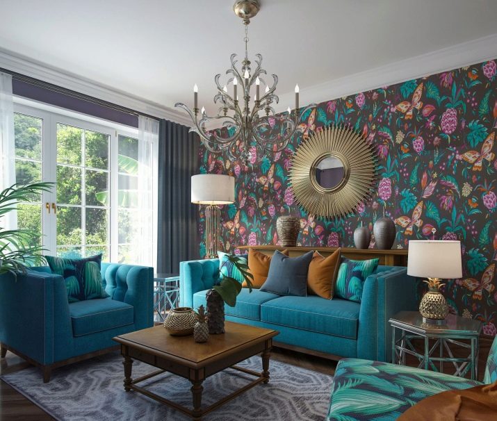 Lukisan itu boleh ditayangkan melalui percetakan skrin sutra, jadi ia tidak akan mengganggu dan sesuai di pedalaman. Mana-mana cetakan kompleks di ruang tamu akan menghasilkan riak visual tambahan. Begitu juga dengan kertas dinding yang kurang dipilih dengan corak 3D. Pilihan miskin imej tiga dimensi dapat dengan serta-merta memecahkan keharmonian ruang tamu.