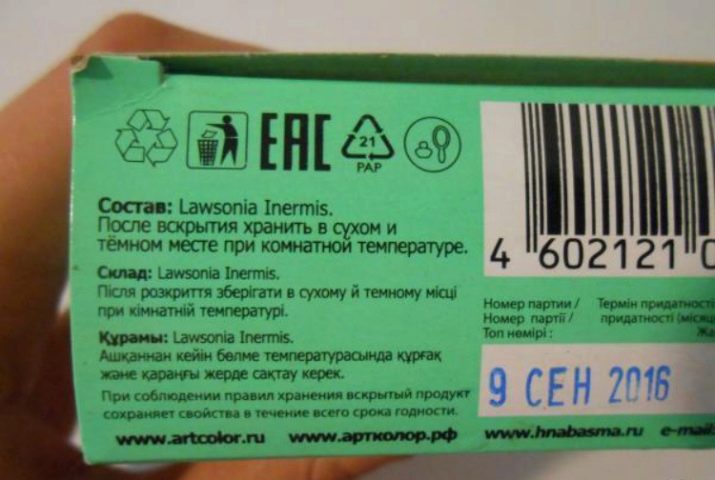 Untuk melindungi diri mereka dari rupa akibat negatif selepas menggunakan pewarna rambut semulajadi, para pakar mengesyorkan agar anda sentiasa mengetahui tarikh tamat tempoh sebelum membelinya. Setiap pengilang menandakan pakej tersebut. Jika tarikh tamat tempoh produk sudah menghampiri akhir, maka ia tidak boleh digunakan.