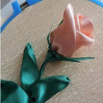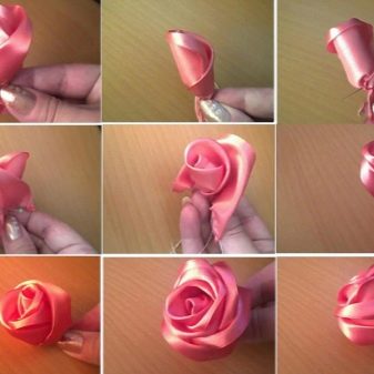 Untuk membuat rosebud megah, lebih baik untuk mengambil reben satin, ia kelihatan luar biasa pada selekoh, meniru garis lembut kelopak. Pemula harus diberi amaran bahawa bekerja dengan atlas sukar, ia tergelincir dan membungkuk lebih keras, tetapi hasilnya luar biasa.