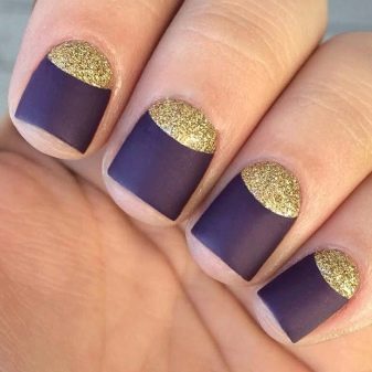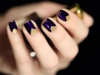 - Dengan warna ungu sempurna harmoni dengan emas. Sebagai contoh, dengan bantuan ungu anda boleh menarik semua kuku, dan menarik lubang jari tengah dan cincin dengan emas.