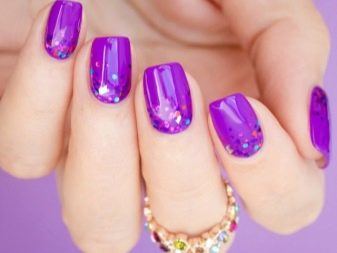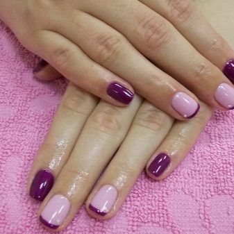 Hari ini terdapat pelbagai pilihan reka bentuk untuk kuku pendek menggunakan nada ungu dan ungu. Perkara utama apabila memilih reka bentuk tidak perlu takut untuk memberikan pengertian bebas kepada imaginasi anda, tampil dengan sesuatu yang baru dan tidak takut dengan idea berani. Dalam sebilangan besar warna, bukan sahaja gel varnis gel yang popular di seluruh dunia diwakili, tetapi juga pilihan biasa untuk kegunaan rumah. Dengan bantuan mereka, anda boleh membuat reka bentuk yang indah.