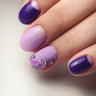 Warna-warna pastel halus ungu, termasuk lavender, ungu, amethyst dan ungu, sesuai untuk hampir semua jenis warna. Di samping itu, mereka secara visual membuat kuku pendek sedikit lagi. Warna halus sesuai untuk seks yang adil dari semua peringkat umur. Mereka boleh dipilih bukan sahaja untuk perayaan, tetapi juga untuk pelbagai busur harian.