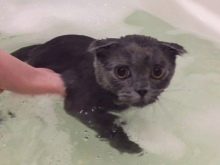 Purata berat kucing lipat hitam baka Scotland adalah kira-kira 8 kilogram.
