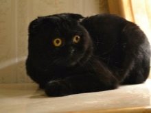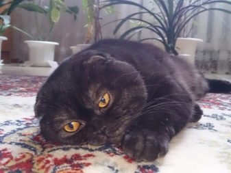 Individu kepunyaan kucing lipat Scotland dan mempunyai mantel hitam, dibezakan dari banyak rakan mereka dengan persaudaraan mereka. Pemilik haiwan kesayangan itu memperhatikannya mereka tidak memerlukan syarat penahanan tertentu, dan juga tidak memerlukan langkah penjagaan yang komprehensif. Fakta ini sering menentukan, dan banyak peternak kucing lebih suka baka ini.