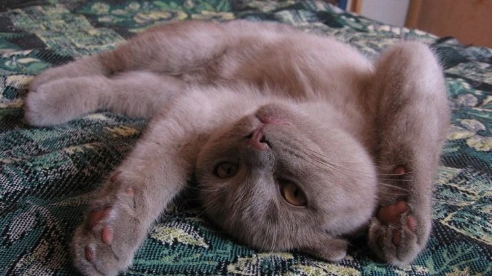 Haiwan-haiwan seperti itu mempunyai struktur yang tidak standard dari auricles - telinga kelihatan bersandar ke depan dan bersandar. Yang lebih padat, telinga menyentuh kepala, kucing yang lebih berharga diiktiraf. Dalam haiwan, moncong juga boleh diratakan, tetapi sama sekali tidak seperti eksotik atau lelaki kacak Persia. Tubuh aristokrat lipat mempunyai kulit yang lebih kuat. Mereka mempunyai kot pendek, yang dicirikan oleh kelembutan.